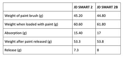 Yangzhou Jingdu Brush Co Ltd of China has conducted a study to compare the different properties of its JD SMART 2 (60% tops) and JD SMART 2B (90% tops) filaments. The experiment as outlined below was commissioned to explore the absorption and release of paint.